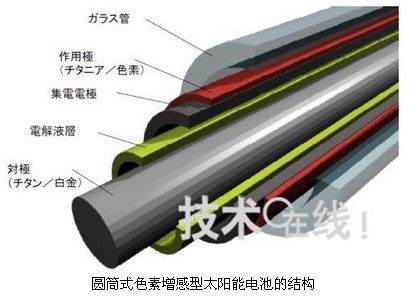 日本新日鐵化學和九州工業大學宣布,試制出了長200mm、直徑為30mm的圓筒式色素增感型太陽能電池。該類型電池的以往產品中,尺寸最大的是九州工業大學教授早瀨修二的研究小組試制的長30mm、直徑6mm的產品。此次的產品由新日鐵化學試制。新日鐵化學和九州工業大學表示:“目前已接近投產水平”。該研究是日本科學技術振興機構(JST)研究項目的一部分。