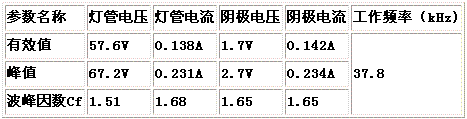 表3能量反饋式電子鎮流器輸出特性