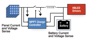 在另一個實例中,ST微電子開發(fā)了一個高度集成的HBLED太陽能MPPT充電器/驅動器。這個全集成的方案帶有MPPT優(yōu)化的電池充電器和集成的HBLED驅動器。這個產品將在2010年晚期發(fā)布,非常適合于HBLED街燈照明應用。