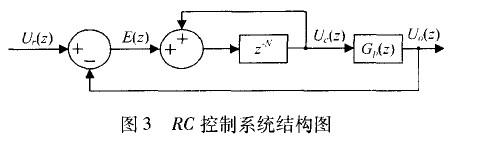 根據內模原理,在閉環系統中加入外部周期信號動態模型,則系統可以達到對外部周期信號漸近跟蹤的目的,重復控制策略正是基于這一原理。圖3為基本重復控制器系統結構圖,其中重復控制器離散表達式為: