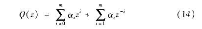 式(12)理論上要求p(z)=1;然而式(9)表明,由于高頻段G(z)趨向0,Q(z)在高頻段應小于1,所以Q(z)應是一個具有零相移的低通濾波器,其表達式為: