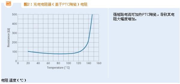 相比之下,如果將固定電阻器用作充電電流限制器,上述故障將導致電阻器產生相當高的功率耗損,這會要求元件要有一定大的尺寸,這很不經濟。以下特殊實例(見圖3)可清楚說明這一功能原理。