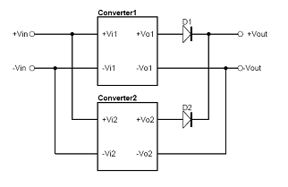 其原理與Drop Resistor相同,使用D1與D2取代電阻的作用,而使用二極管的好處,還可用來防止不同電源模塊之輸出電壓逆流到另一個電源模塊,這在某些電源架構上是需要的。
