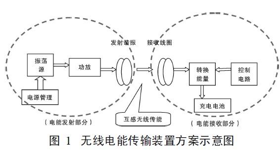 將直流電轉(zhuǎn)換成高頻交流電,然后通過沒有任何有有線連接的原、副線圈之間的互感耦合實現(xiàn)電能的無線饋送。基本方案如圖1所示。