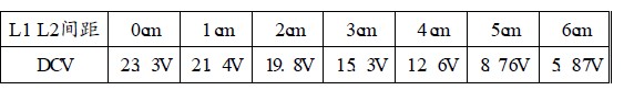 調(diào)RP2使其兩端電壓為4.15V,這就是鋰離子電池的充電終止電壓。改變L1與L2的間距,在0-6cm之間基準電壓應當恒定為4.15V。