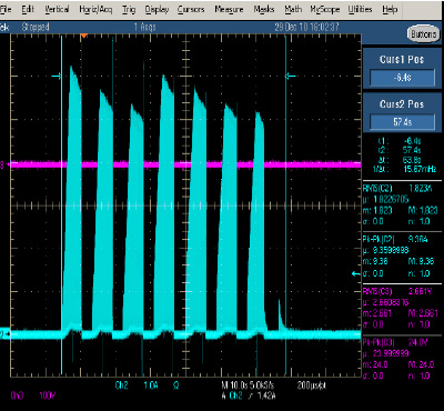 圖7:PPTC組件在多功能豆漿機馬達堵轉保護波形