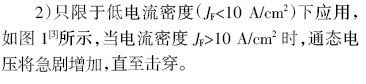 1)在有限面積的接觸處,擊穿電壓通常會(huì)小于100 V;