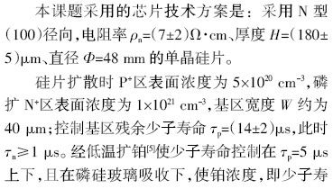 本課題采用的技術(shù)方案是在電焊機(jī)專用大電流密度整流二極管的科研成果[4]的基礎(chǔ)上,如單晶的選取、擴(kuò)散方法和技術(shù)要求、多層金屬化的歐姆接觸、臺(tái)面噴砂造型和聚酰亞胺鈍化保護(hù)、管殼設(shè)計(jì)等大都是直接借用過來的,并且是經(jīng)過改進(jìn)的方案研制的,所以使整個(gè)研制工作走了捷徑。