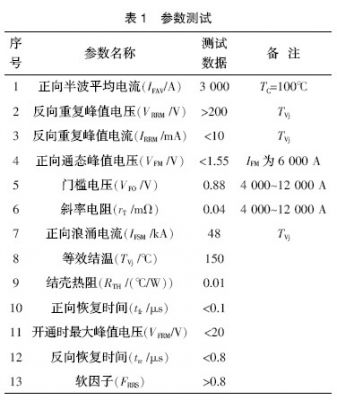 測(cè)試研制生產(chǎn)的器件,以規(guī)格是直徑48 mm/3 000 A/200 V的器件為例,記錄實(shí)測(cè)結(jié)果如表1所列。