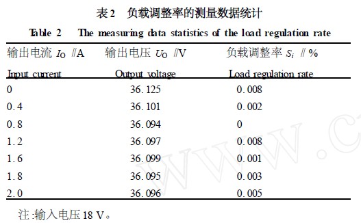 (3) 電壓調整率Su 的測試。在給定的輸入電壓從15~21 V 變化時,用5 位半的數(shù)字表分別測出負載電壓的最大變化量,然后除以負載電壓就可以計算出Su。用同樣的方法可以測出Si 。
