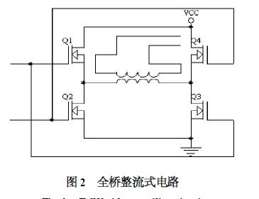 (2) 全橋整流式電路。圖2 所示為全橋整流式電路。該方案采用了4 個MOS 管,工作時對管同時導通,半周期內Q1、Q3 導通,Q2、Q4 截止,然后Q2、Q4 導通,Q1、Q3 截止。這樣的工作方式使每半周期都有2 個MOS 管來分壓,對MOS管的耐壓要求就降低了,適用于高壓場合,但由于使用了4個MOS 管,使得損耗功率增加,開關損耗同時增加。考慮到農業(yè)機械一般功率較大,采用該方案必然降低電能利用率,導致大量的能耗損失。
