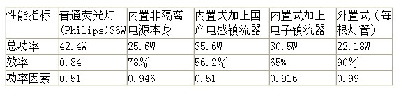 也就是說,直接替換的結果是效率大大降低,對于國產電感鎮流器,效率只有56.2%。只比普通熒光燈節電6.8W。