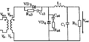 當(dāng)主開關(guān)管VS 關(guān)斷時,勵磁電流流經(jīng)磁復(fù)位電路。變壓器次級電壓反向,VS1 和VS3 關(guān)斷。VS2 的柵2源極寄生電容由流經(jīng)VD 的電流充電。輸出電流由VS2 續(xù)流。在t2 時刻,磁復(fù)位結(jié)束,變壓器次級電壓為零。因為VD1 承受反壓截止,VS3 關(guān)斷,VS2 的柵極驅(qū)動電壓不變,因此即使變壓器次級電壓為零,VS2 保持導(dǎo)通續(xù)流。VS2 柵極驅(qū)動電壓一直保持到下一個開關(guān)周期開始,且VS3 導(dǎo)通之時。這就解決了死區(qū)時間內(nèi)體二極管導(dǎo)通的問題。