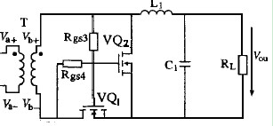 當(dāng)變壓器次級同名端電壓為負(fù),VQ1關(guān)斷,VQ2開通。負(fù)載電流通過VQ2續(xù)流。這就是同步整流的基本原理。