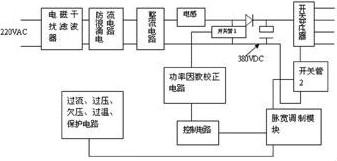 大多數升壓型功率因數校正電路在其濾波電容上的電壓值約為380V DC,其組成如下面框所示: