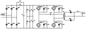 電源中工頻濾波器接在工頻整流與逆變電路之間,既能將脈動(dòng)電流變?yōu)槠交闹绷鳎€能抑制高頻干擾,尤其是變換中產(chǎn)生的高頻干擾。