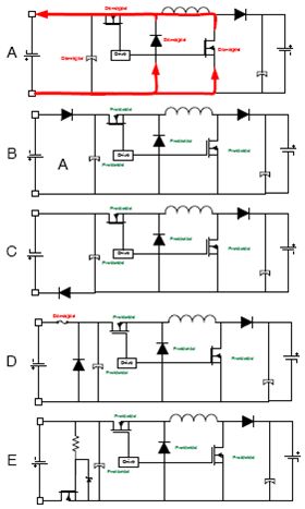 四開關(guān)非反相降壓-升壓有兩種操作模式,即降壓模式和降壓-升壓模式。在降壓模式下,轉(zhuǎn)換器產(chǎn)生輸入電壓脈沖,它經(jīng)過LC濾波來產(chǎn)生一個(gè)較低的直流輸出電壓。輸出電壓可以通過修改相對(duì)于開關(guān)周期或開關(guān)頻率的導(dǎo)通時(shí)間來改變。