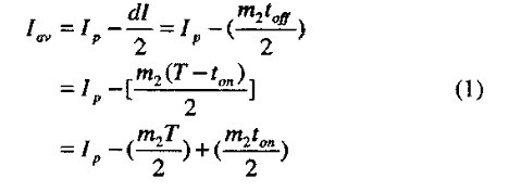其中Ip是峰值電流,dl是峰值電流和最小值的差值,T是時(shí)鐘周期,ton和toff分別為功率管開啟時(shí)間和關(guān)斷時(shí)間