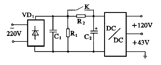 現有的大屏幕彩電內用開關電源一般采用全橋不可控整流電路直接加電解電容濾波電路。圖2 示出該電路形式。