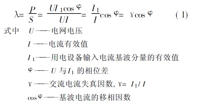 用電設備的λ指交流輸入有功功率P 和輸入視在功率S的比值, 即: