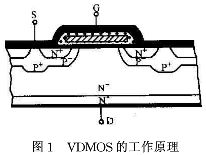 VDMOSFET是電壓控制器件,在柵極施加一定的電壓,使器件溝道表面反型,形成連接源區(qū)和漏區(qū)的導(dǎo)電溝道。基本工作原理如圖1。