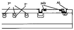 這種結(jié)構(gòu)在版圖設(shè)計(jì)上通過(guò)增加鋁場(chǎng)板的長(zhǎng)度來(lái)實(shí)現(xiàn),比較容易控制,使得金屬覆蓋過(guò)離主結(jié)最近的場(chǎng)限環(huán),它不僅起到了場(chǎng)板和場(chǎng)限環(huán)的效果,又避免了傳統(tǒng)結(jié)構(gòu)在場(chǎng)板的邊緣產(chǎn)生新的電場(chǎng)峰值,避免了電壓在場(chǎng)板邊緣和場(chǎng)限環(huán)之間的提前擊穿。