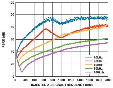 在PLL系統中,較高的VCO推壓意味著VCO電源噪聲的增加倍數更大。為盡可能降低對VCO相位噪聲的影響,需要低噪聲電源。