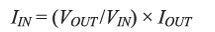 由于功耗降低,輸入功率必須等于傳遞至負載的功率減去所有損耗。假定轉換十分有效,則少量的功率損失可在基本功耗計算中省略不計。因此輸入電流可近似表示為: