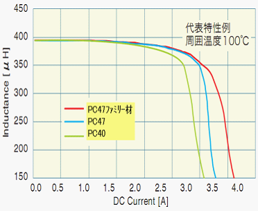 圖3:PC47材質的飽和電流大于普通材質PC40