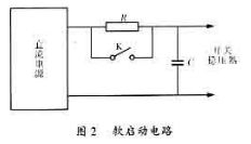 開關穩壓電源的電路比較復雜,基本上可以分為小功率的控制部分和大功率的開關部分。開關晶體管則屬大功率,為保護開關晶體管在開啟或關斷電源時的安全,必須先讓調制器、放大器等小功率的控制電路工作。為此,要保證正確的開機程序。開關穩壓器的輸入端一般接有小電感、大電容的輸入濾波器。在開機瞬間,濾波電容器會流過很大的浪涌電流,這個浪涌電流可以為正常輸入電流的數倍。這樣大的浪涌電流會使普通電源開關的觸點或繼電器的觸點熔化,并使輸入保險絲熔斷。另外,浪涌電流也會損害電容器,使之壽命縮短,過早損壞。為此,開機時應該接入一個限流電阻,通過這個限流電阻來對電容器充電。為了不使該限流電阻消耗過多的功率,以致影響開關穩壓器的正常工作,而在開機暫態過程結束后,用一個繼電器自動短接它,使直流電源直接對開關穩壓器供電,如圖2所示。這種電路稱之謂開關穩壓器的“軟啟動”電路。