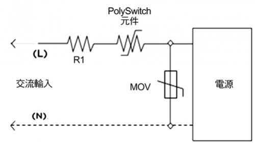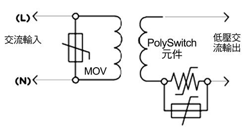 在照明系統(tǒng)中采用第二類功率源可成為降低成本、提高彈性的重要因素之一。固有的有限功率源,如變壓器、電源供應(yīng)器或電池等,可以包含保護(hù)組件,只要不依靠它們限制第二類功率源的輸出即可。非固有型的有限功率源,按照定義,具有一個(gè)分立保護(hù)組件,當(dāng)電流和能量輸出達(dá)到預(yù)定值時(shí)它會(huì)自動(dòng)中斷輸出,各種電路保護(hù)組件都有助于提供LED照明應(yīng)用第二類功率源的安全操作。圖4表示了一種協(xié)同保護(hù)策略的工作原理,它在交流輸入上采用了一個(gè)MOV,在輸出電路分支上采用了一個(gè)PolySwitch組件,可以幫助廠商滿足UL 1310第35.1小節(jié)針對(duì)開關(guān)和控制裝置的過載試驗(yàn)要求。