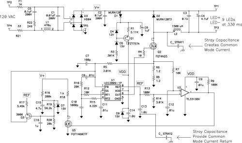 非隔離式電源的共模電流可能成為一個電磁干擾 (EMI) 源,您是否曾經消除過它呢?在一些高壓電源中,例如:LED 燈泡所使用的電源,您可能會發現您無法消除它們。經仔細查看,發現非隔離式電源與隔離式電源其實并沒有什么兩樣。開關節點接地寄生電容,產生共模電流。