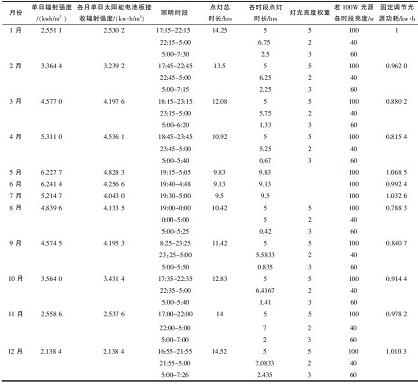 開關(guān)燈的時間根據(jù)天安門升降旗時間而定,如表1所示,全年最長點燈時長茌12月為14.52小時,最短為9.13小時。照明時間分為3個時段,第一個時段從當天天安門降旗時刻開始,為5個小時,第二個時段到早上5點,第三個時段從5點到滅安門升旗時刻,燈光亮度各時段權(quán)重比為5:2:3,如果以100 W光源為設計標準,則光源功耗最大為1.068 5 kW-h。