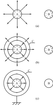 (1)電場感應電場感應是由電場耦合而產生的一種干擾,也稱為電容性耦合干擾,它是由于兩單元電路間存在的分布電容所引起的,是兩電路間電場相互作用的結果。由于實際電路中雜散電容的存在,這就勢必使一個電路中電荷的變化影響到另一個電路,形成兩電路間的相互影響。在頻率極高的射頻段,電場耦合干擾極為嚴重,在低頻段如果電路的工作電平不高,即使在音頻范圍內,電場耦合的干擾也是不容忽視的。