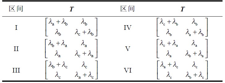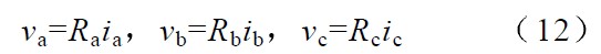 式 (11 )為相電壓不對稱系數的計算公式,其中λa ,λb 和λc 為相電壓不對稱系數,Re 為標準等效電阻。可見,當電網電壓不對稱時,為使各相電流仍能正確跟蹤對應相電壓,各相等效電阻值是不同的。特殊地,如果三相電壓對稱,λa=λb=λc =1 ,則Ra=Rb=Rc=Re.