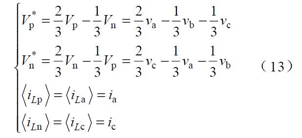 根據式 (3 ),以區間I 為例,可以通過控制開關 Tp 、Tn 使電感電流iLb iLc 對應 V *p和 V *n相應的變化來實現。由于在I 區間內有:
