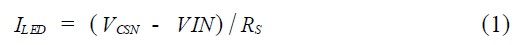 式中:ILED ---流過(guò)L ED 的電流;VCSN ---電壓檢測(cè)端電壓;RS ---電流采樣電阻。