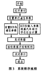 計算機(jī)通過串行口向發(fā)動機(jī)ECU發(fā)送數(shù)據(jù),采集到ECU噴油和點火輸出信號,通過串行口將這些數(shù)據(jù)傳給計算機(jī)。計算機(jī)接收數(shù)據(jù)并繪制圖形。