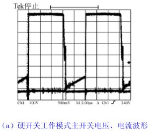 圖7(a)、7(b)、7(c)給出了實測的主開關管工作電壓、電流波形。圖7(a)顯示主開關管工作在硬開關狀態。圖7(b)和圖7(c)分別是采用增加勵磁電流方法和應用磁飽和電感器方法實現零電壓軟開關的電壓電流波形,后者明顯地降低了勵磁電流和開關管電流的峰值。實測波形與理論分析完全一致。圖8、9顯示出了實測的效率曲線。從圖9中看出,當變換器開關頻率增加時,變壓器勵磁電流損耗和開關管通態損耗所占比重增加,變換器效率降低了。實驗結果驗證了理論分析。