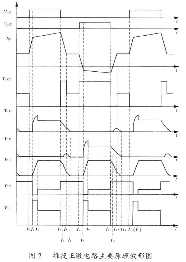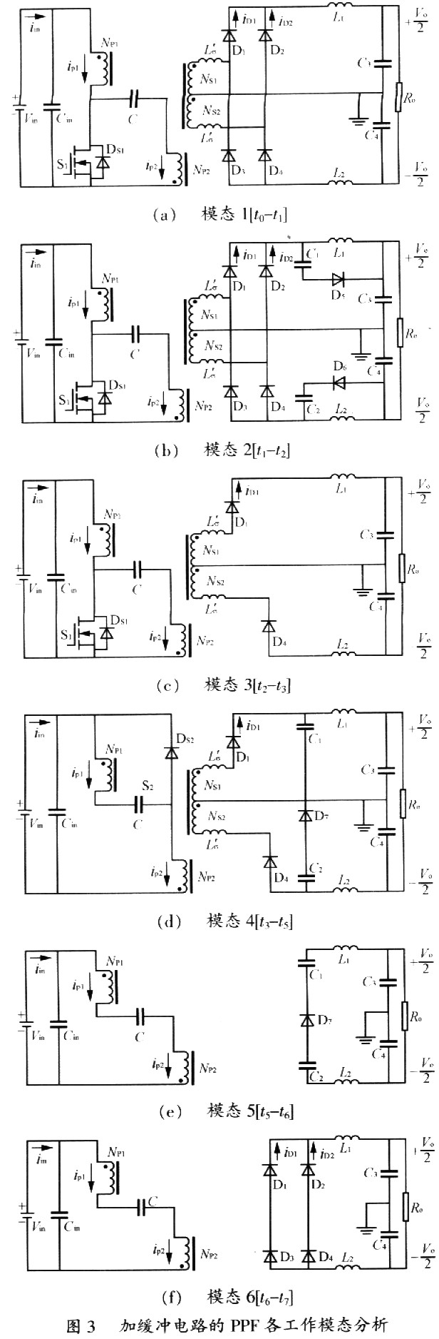 圖2為加無損緩沖吸收的PPF電路工作原理波形圖,一共分為14個工作模態(tài)。