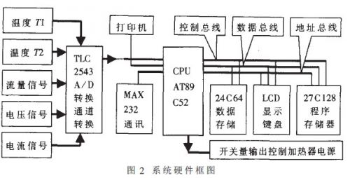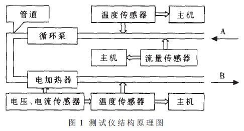 本儀器由流量傳感器、電流傳感器、電壓傳感器、溫度傳感器、泵、電加熱器;管道和主機等緩威.結構面匡如圖1所示。