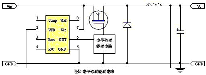 當(dāng)主電路的供電電壓不太高時(shí),可插入圖二所示的電平轉(zhuǎn)換驅(qū)動電路。這種方法的優(yōu)點(diǎn)是成本較低,缺點(diǎn)一是當(dāng)輸入電壓Vin較高時(shí)不易處理好;二是電平移動驅(qū)動部分需要電荷泵供電,因此電路比較繁復(fù)。