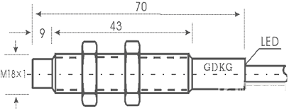 圖2 CLG型M18×70標準結構開關外部尺寸圖