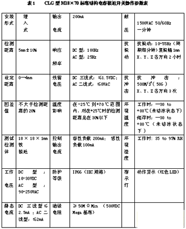 電容式接近開關屬于一種具有開關量輸出的位置傳感器,它的測量頭通常構成電容器的一個極板,而另一個極板是物體的本身,當物體移向接近開關時,物體和接近開關的介電常數ε發生變化,使得和測量頭相連的電路狀態也隨之發生變化,由此便可控制開關的接通和關斷。被這種接近開關的檢測物體,并不限于金屬導體,也可以是絕緣的液體或粉狀物體,在檢測較低介電常數ε的物體時,可以順時針調節多圈電位器(位于開關后部)來增加感應靈敏度,一般調節電位器使電容式的接近開關在0.7-0.8Sn(Sn為電容式接近開關的標準檢測距離)的位置動作。這里選用的是浙江省洞頭縣光電開關廠生產的CLG型M18×70標準結構的開關。它的外型圖與尺寸標示圖分別如圖1與圖2所示。