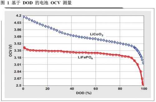 然而,更新電池總化學容量 (Qmax) 相關信息要求具備某些條件。磷酸鐵鋰(LiFePO4) 電池的極端穩定電壓狀態下要完成這項工作變得較為困難(請參見圖1),特別是如果無法對電池完全放電且讓其休息數小時那就更加困難了。圖 1顯示了典型開路電壓 (OCV) 特性與鈷酸鋰 (LiCoO2) 和磷酸鐵鋰 (LiFePO4)電池化學屬性放電深度 (DOD) 的關系。本文主要討論參考文獻 1 和參考文獻2 的阻抗跟蹤技術。