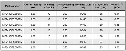 MF2410雖然體積嬌小,但分?jǐn)嗄芰_(dá)到100A@250VAC,同時(shí)DCR很低,是目前全球市場(chǎng)上能夠滿足IEC60127-4標(biāo)準(zhǔn),最小體積的250VAC貼片保險(xiǎn)絲。