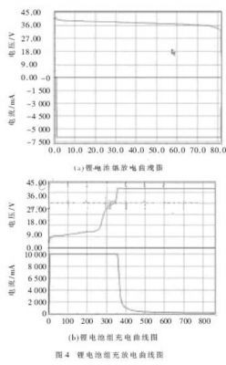 通過電池管理系統(tǒng)對錳酸鋰電池組進行充放電測試。圖4(a)為鋰電池組放電測試圖,放電電流為8 A,當電池組電壓降至32 V時,放電MOS管關斷。圖4(b)為充電的測試圖。充電結束4小時后,均衡完成。