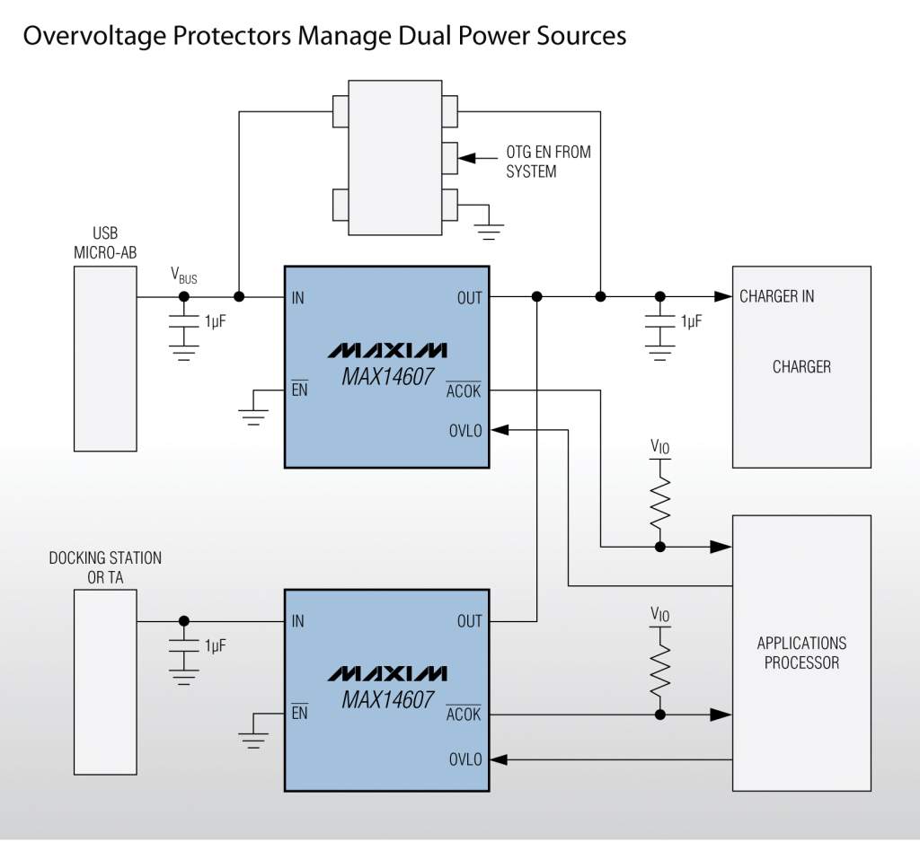 Maxim Integrated Products, Inc 近日推出先進的過壓保護器MAX14606/MAX14607,能夠為連續電流高達3A的大功率電子產品提供有效保護。反向偏置電路保護多電源同時供電的便攜設備不被損壞。 MAX14606/MAX14607經過優化設計,在平板電腦、智能手機及便攜式媒體播放器等移動設備中有效保護內部電路。