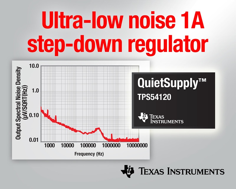 日前,德州儀器 (TI) 宣布推出最新系列穩壓器,其可在不影響效率及電源性能的情況下,提供業界最低噪聲的 1 A 開關電源,從而可充分滿足當前噪聲敏感型醫療、工業以及電信設計在峰值性能下正常工作而對平穩安靜電源的需求。TI QuietSupply™ 穩壓器系列的首款產品 TPS54120 與其它電源轉換器件相比,可將開關噪聲銳降達 99%,并可幫助最大限度提高精確數據轉換器與放大器以及靈敏時鐘分配電路的性能,充分滿足電信、測試設備以及高端音頻視頻設備等應用的使用需求。