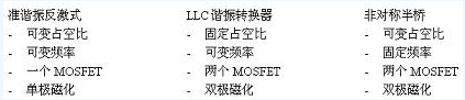 圖1:準諧振、LLC和非對稱半橋拓撲的比較